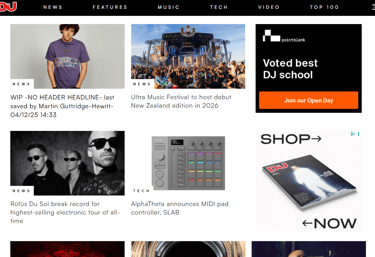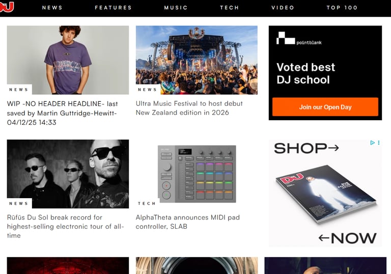 A magazine aimed at DJs and the electronic music industry, with news, reviews, interviews, and the famous Top 100 DJs poll.